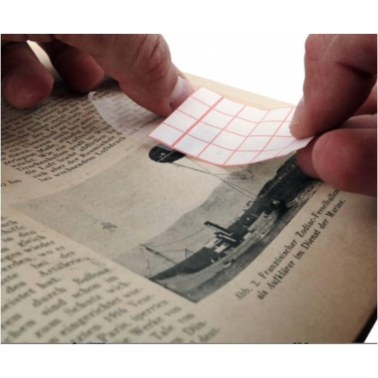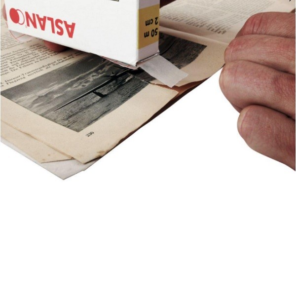 Transparentna taśma samoprzylepna zaprojektowana do naprawy podartych, zadrukowanych kart papieru. Przy skanowaniu reperowanych materiałów nie pozostawia cieni. Pomimo upływu czasu zaklejony papier nie żółknie.
